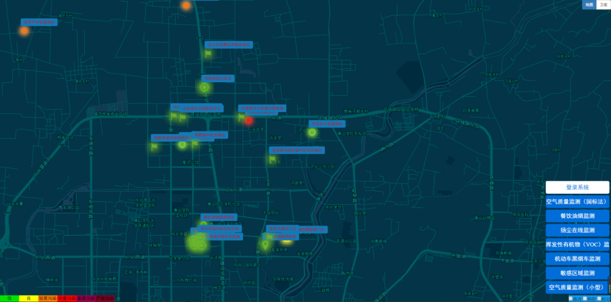 在應(yīng)用層,可以GIS方式直觀、形象的實時顯示各監(jiān)測點位和整個區(qū)域的空氣質(zhì)量狀況,以及污染物濃度水平,并提供異常報警、區(qū)域空氣質(zhì)量變化趨勢等多種服務(wù)。