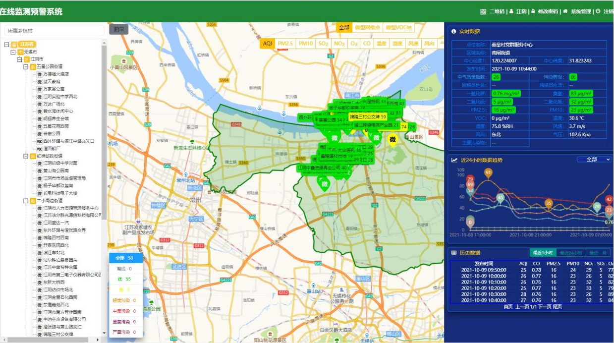 在應(yīng)用層,可以GIS方式直觀、形象的實(shí)時顯示各監(jiān)測點(diǎn)位和整個區(qū)域的空氣質(zhì)量狀況,以及污染物濃度水平,并提供異常報警、區(qū)域空氣質(zhì)量變化趨勢等多種服務(wù),以方便相關(guān)人員對各系統(tǒng)工況進(jìn)行及時、合理的調(diào)整,使病人及醫(yī)院員工處于健康的環(huán)境中。